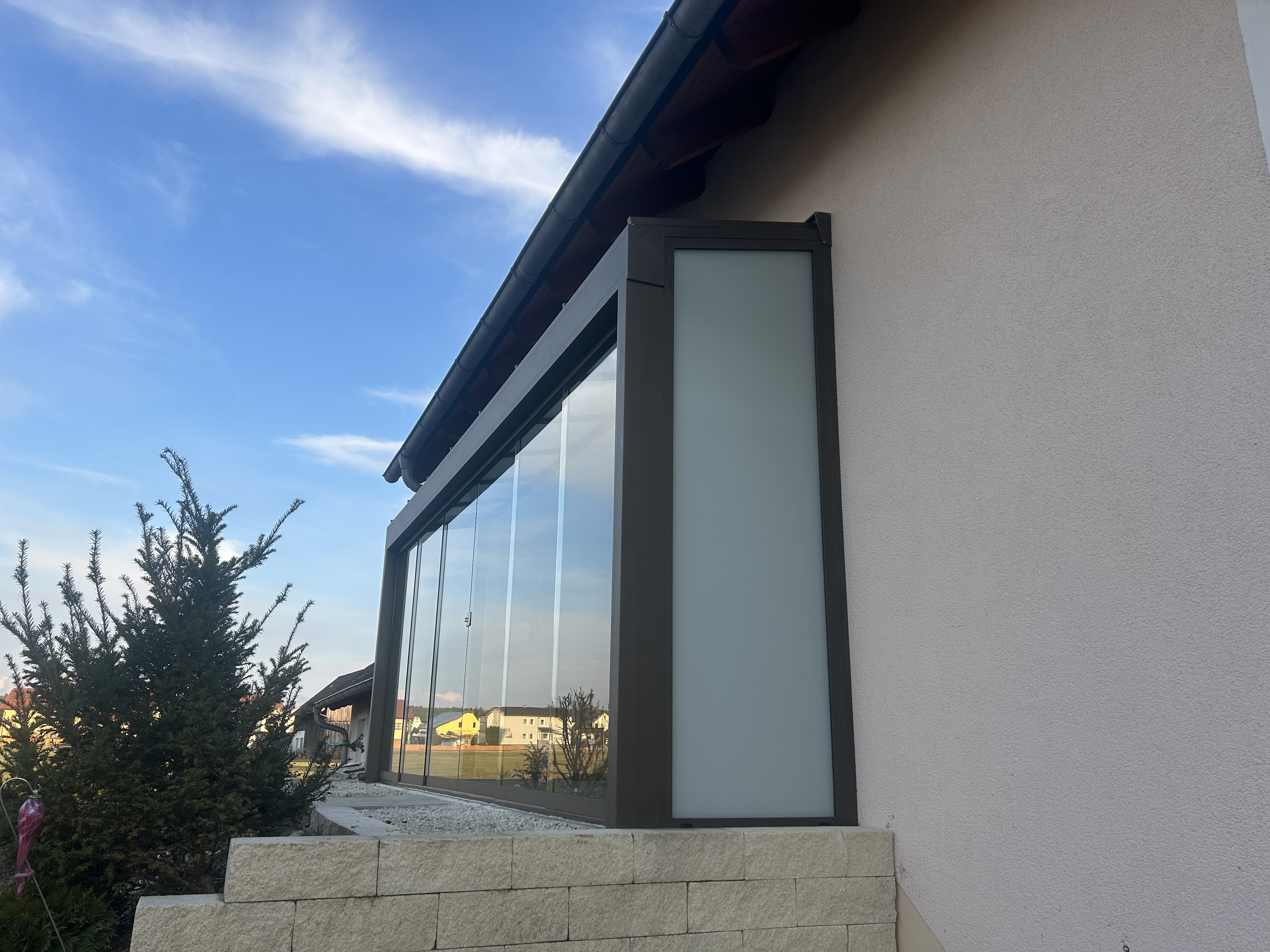 Durch die Kombination von feststehenden Verglasungen und Schiebeelementen entsteht ein wandelbarer Außenbereich, der sich optimal an unterschiedliche Wetterverhältnisse anpasst. Gleichzeitig sorgt das hochwertige Material für Langlebigkeit und ein ansprechendes Erscheinungsbild.