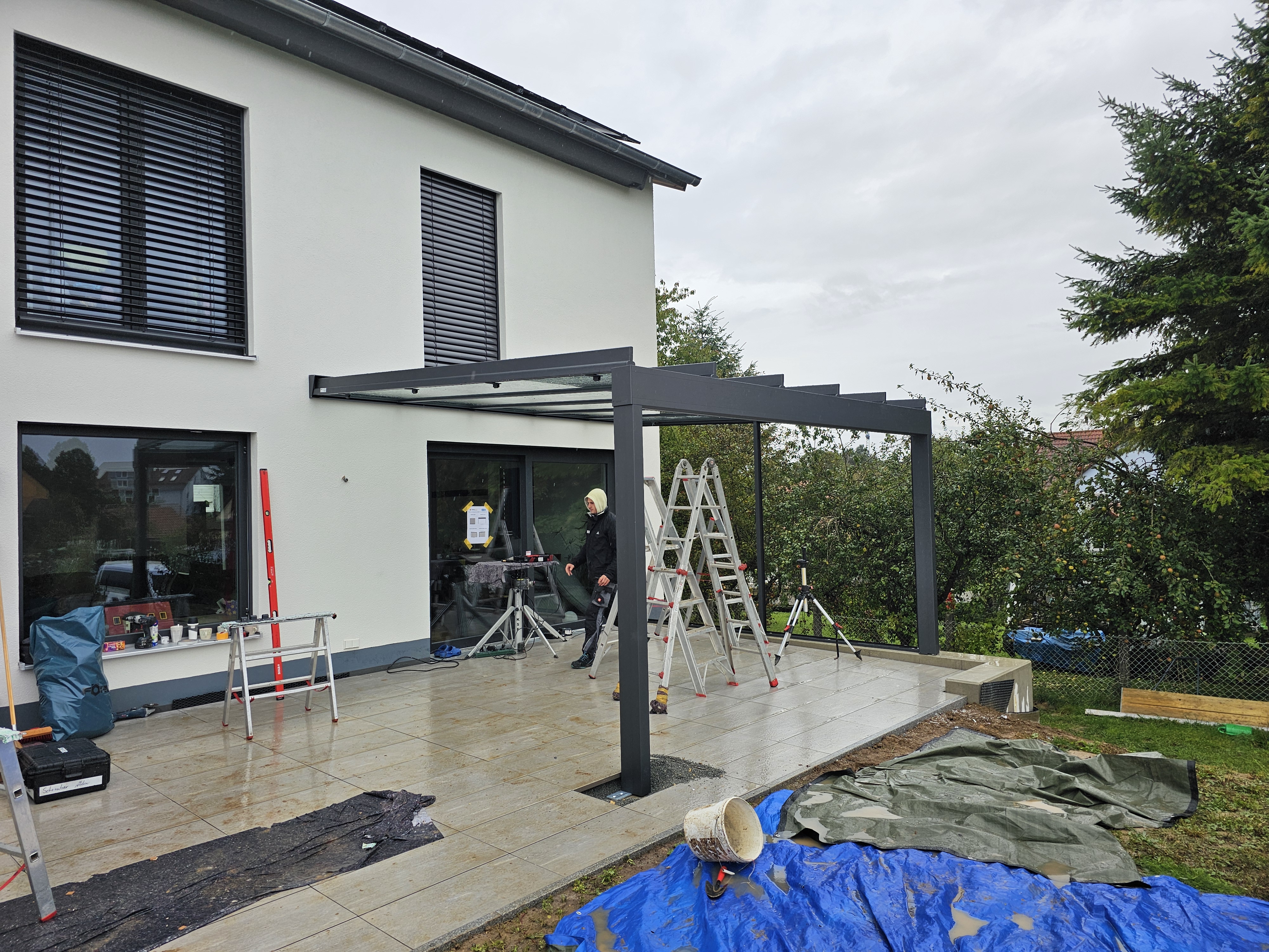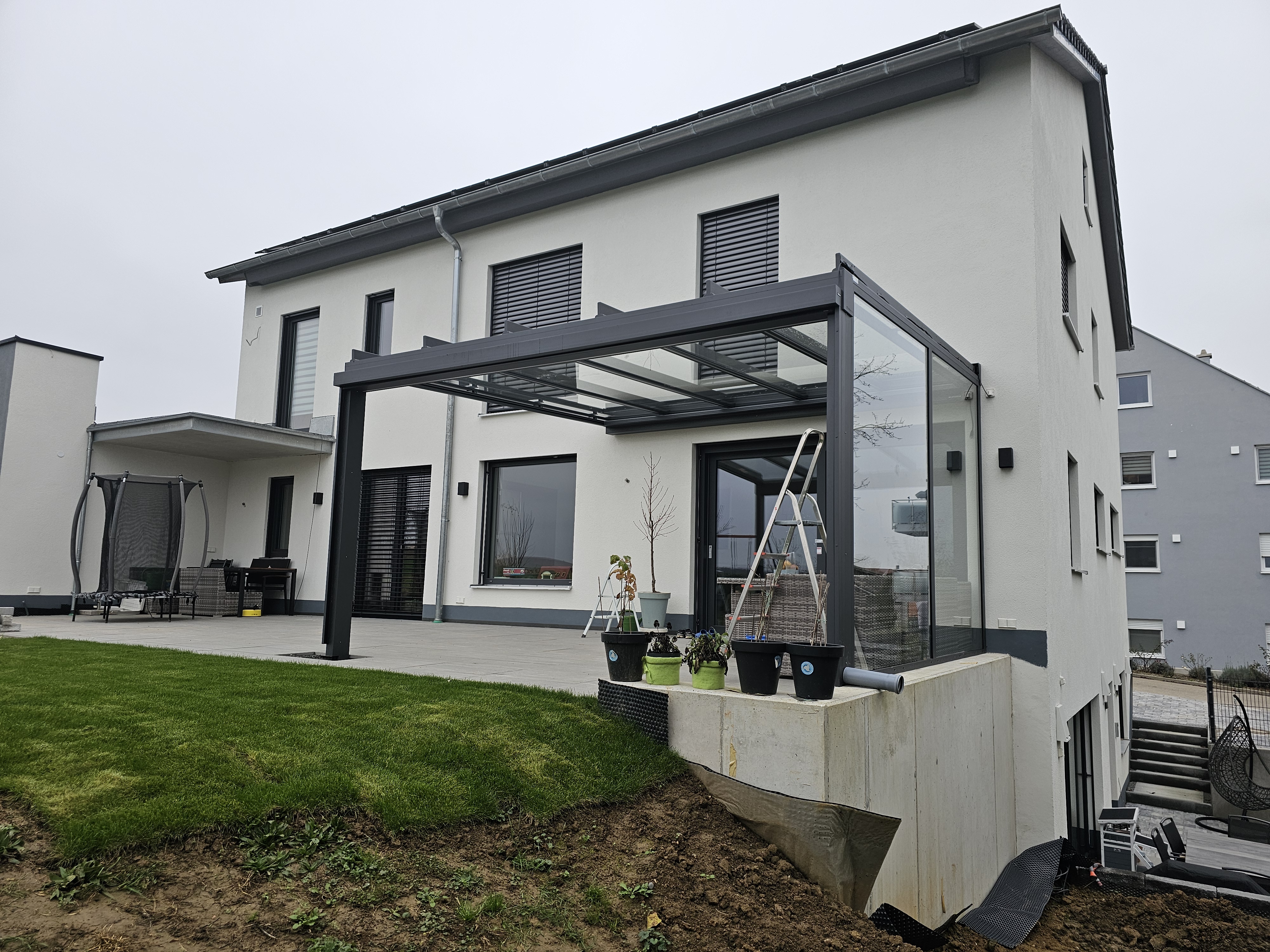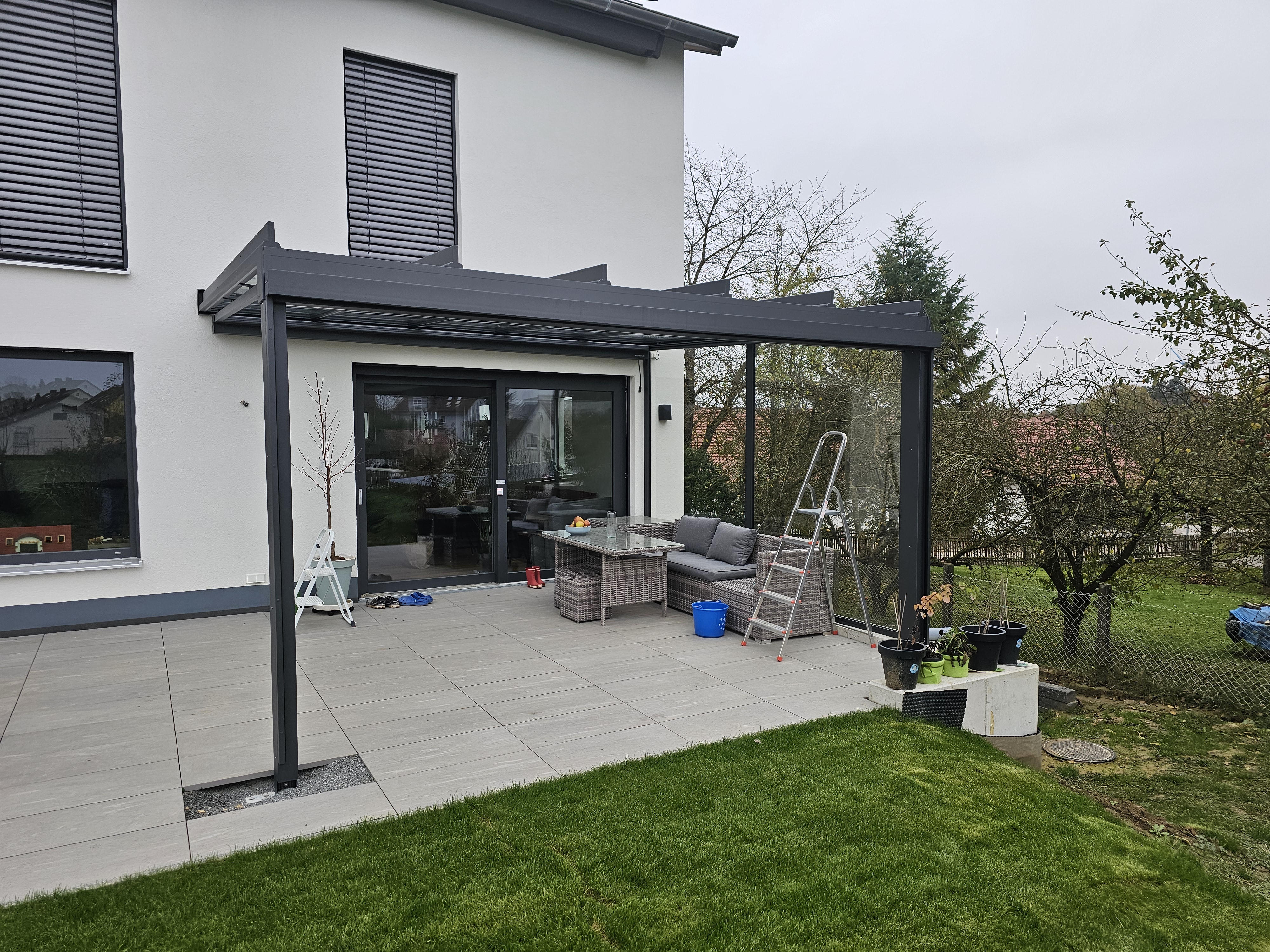 In Obertraubling haben wir für einen privaten Bauherrn eine offene Wohnraumerweiterung realisiert, die keine Wünsche offenlässt. Mit dem Terrassendach Avantgarde A600 des renommierten Herstellers Terrasign haben wir eine Überdachung geschaffen, die sich nahtlos in die bestehende Architektur einfügt. Gefertigt aus hochwertigem Aluminium in RAL 7016 Anthrazit, besticht sie durch ihre moderne Optik und Langlebigkeit.