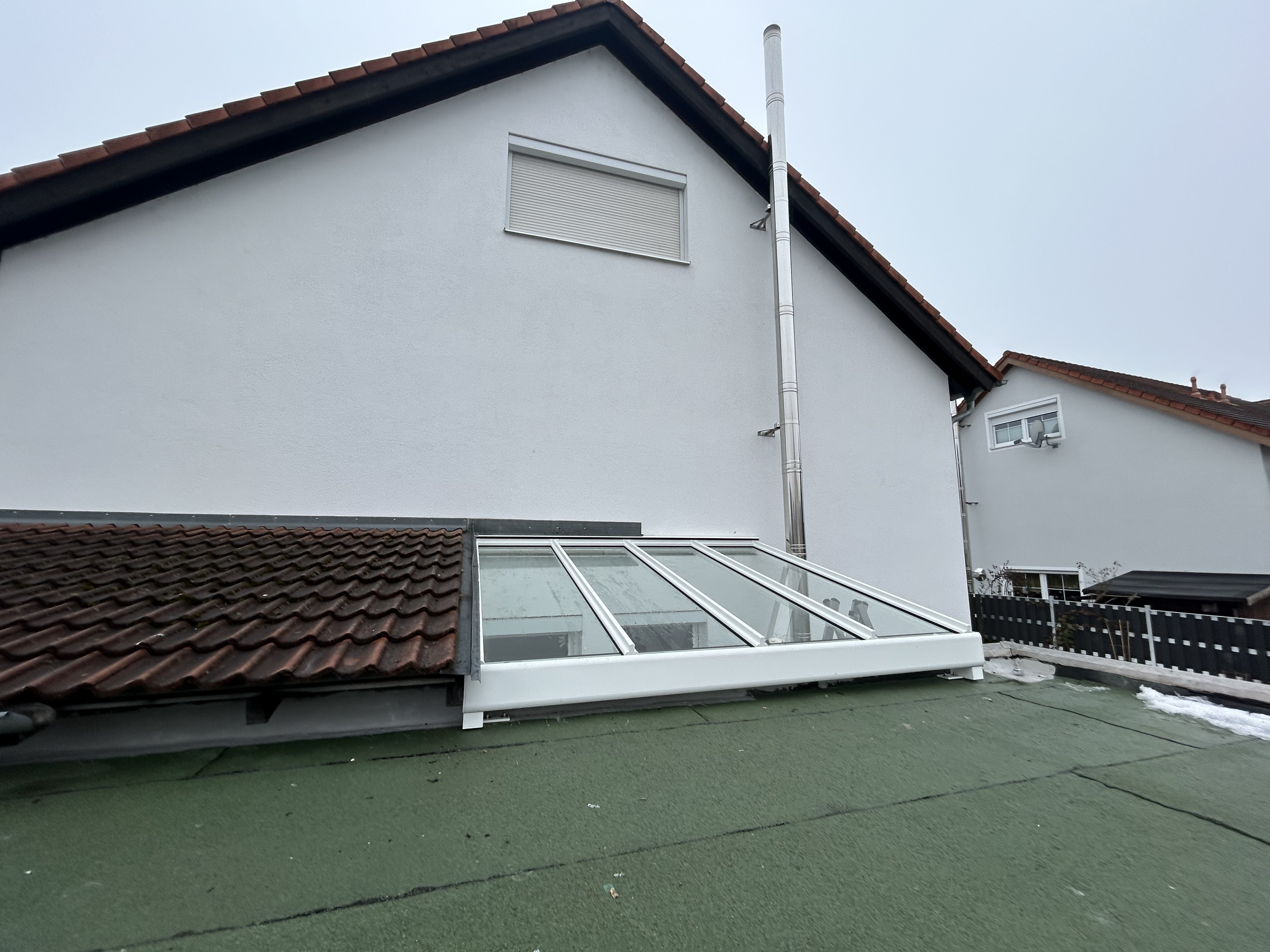 In Teublitz durften wir für unseren privaten Bauherrn eine moderne Eingangsüberdachung in RAL 7016 Anthrazit realisieren. Zum Einsatz kam das System Menorca I von Ariane, eine langlebige Aluminiumkonstruktion, die durch klare Linien und eine hochwertige Oberfläche überzeugt. Besonders wichtig war die harmonische Wirkung: Farbton und Design wurden so gewählt, dass das Vordach ideal zu Haustür und Fenstern passt und das Gesamtbild des Hauses ruhig und hochwertig wirkt.
