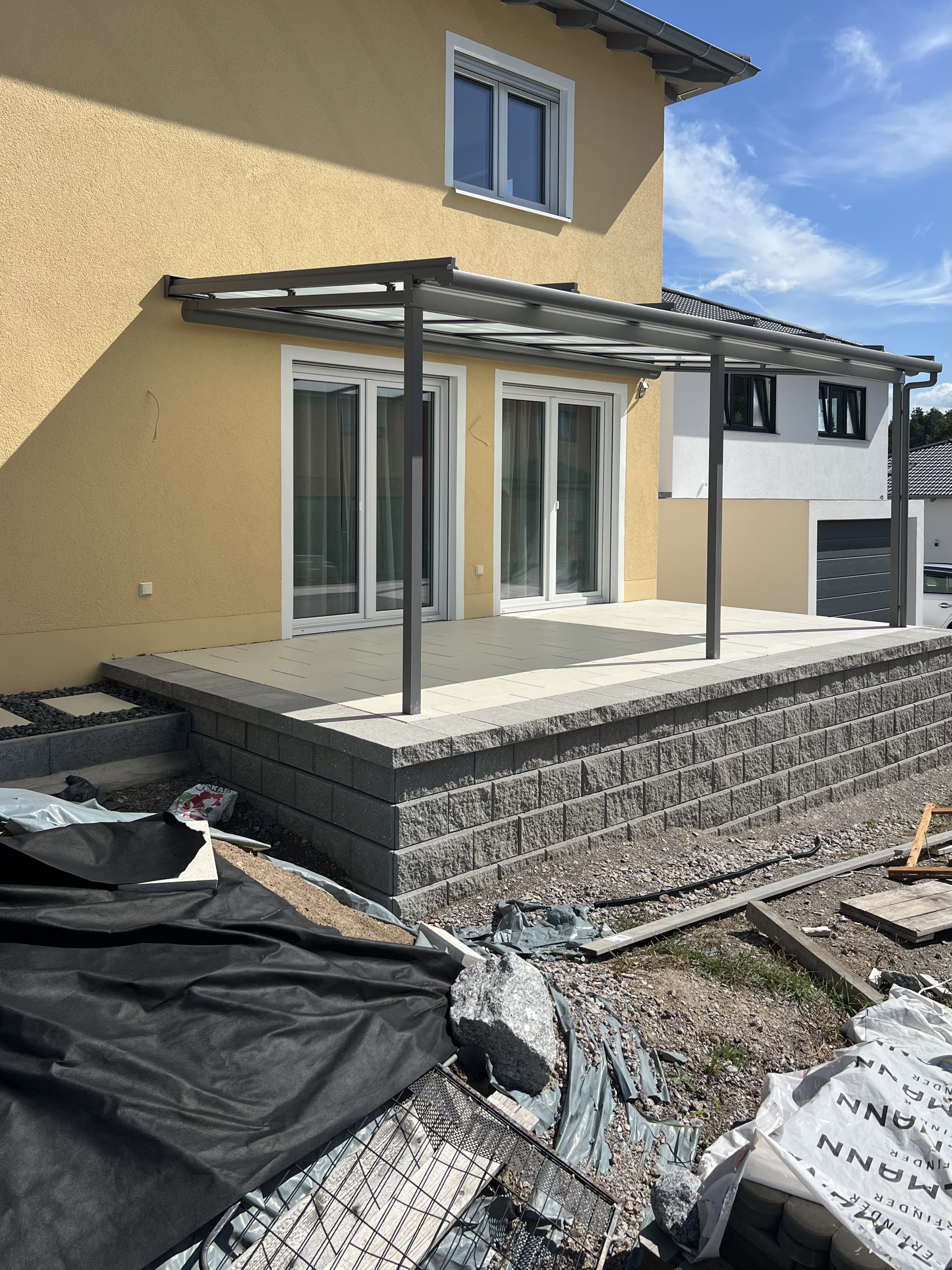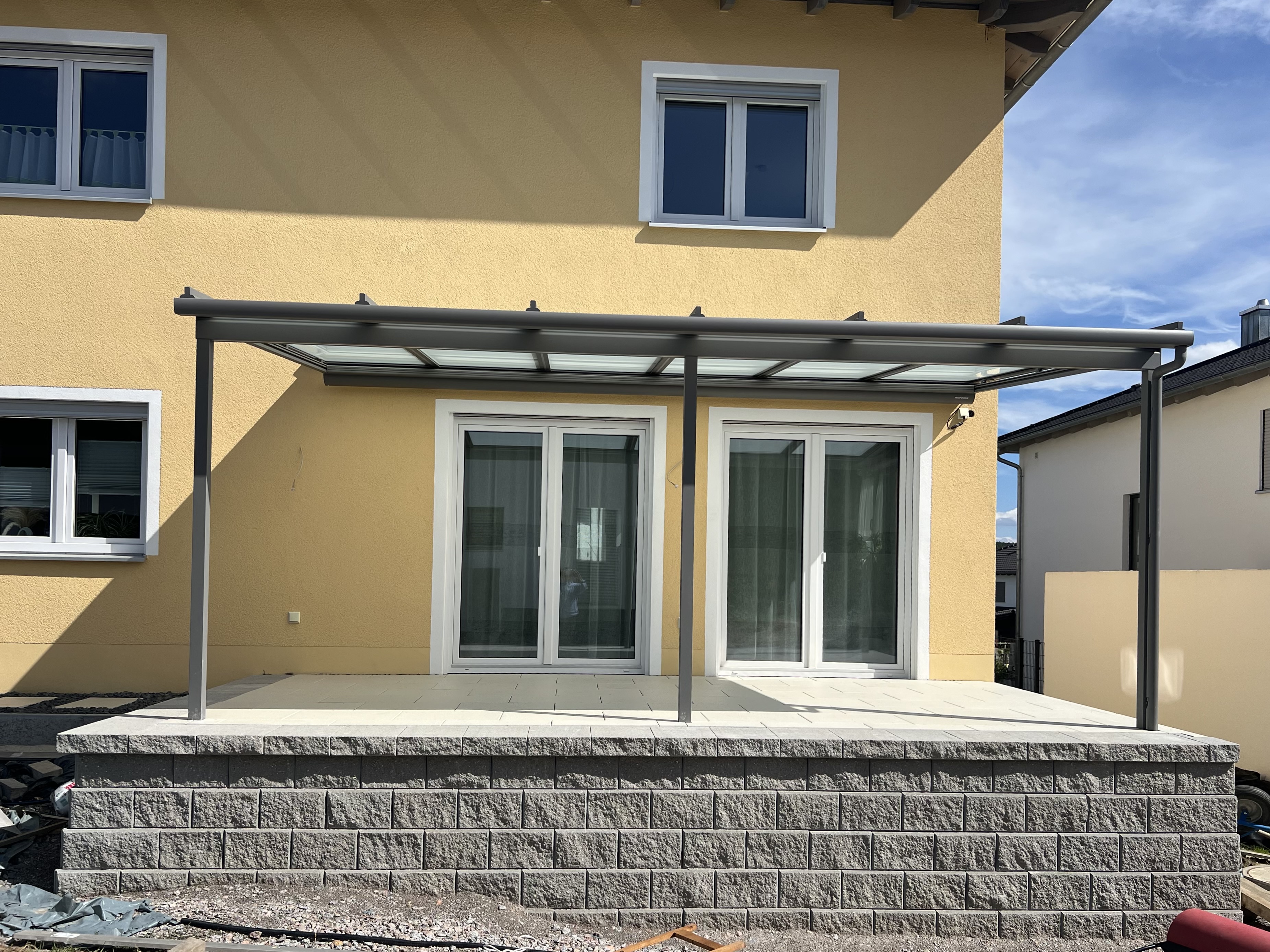 Für unseren privaten Bauherrn in Wackersdorf haben wir ein hochwertiges Terrassendach des Systems Elegance E 600 von Terrasign realisiert. Die pulverbeschichtete Aluminiumkonstruktion in RAL 9007 Graualuminium fügt sich harmonisch in die Hausfassade ein und überzeugt mit schlanker Statik und langlebiger Oberfläche.